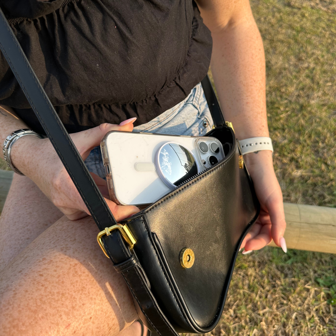 Pocket-sized mirror for flawless selfies and perfectly framed shots.